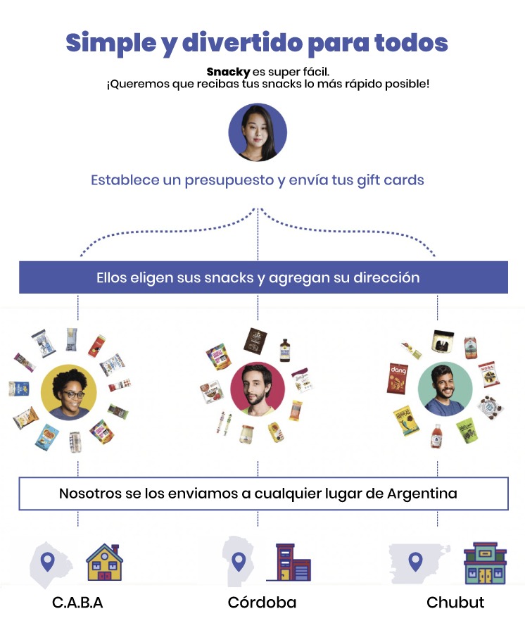 - Los destinatarios registrarán su dirección de envío y personalizarán su caja de snacks según sus preferencias.