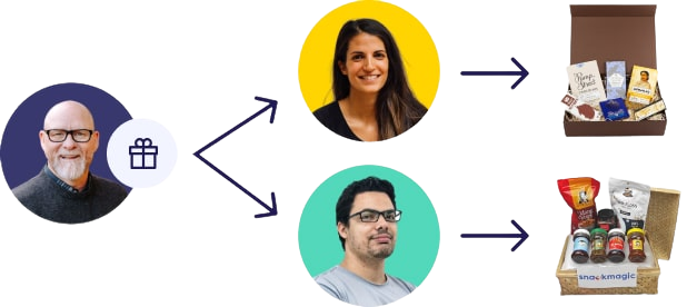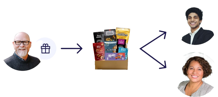 Establece un presupuesto por colaborador y permite que los destinatarios elijan sus snacks favoritos de entre más de 3000 opciones saludables.